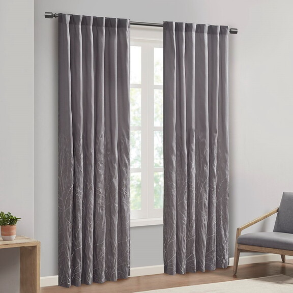 The Madison Park Andora Window Panel Combines Style And Nature In The Best Way. A Striking Tree Branch Design Is Embroidered On Beautiful Faux Silk, Creating Alluring Contrast And Dimension. The Panel Features Added Lining For More Privacy And Better Drapability, While The Luxurious Sheen Provides A Touch Of Sophistication To Your Decor. Hang Using The Rod Pocket Top For A More Casual Style Or By The Back Tabs For A Crisp, Tailored Look. Fits Up To A 1.25" Diameter Rod. Due To The Fabrication And All Over Embroidery Design, Some Texture And Crinkle Maybe Left After Steaming (Steam Only, Do Not Iron).