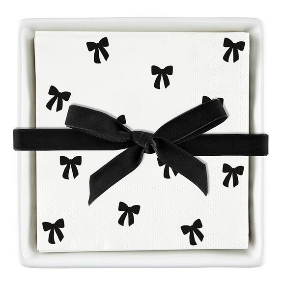 PURE Design Ceramic Napkin Tray + Napkins - Black Bows