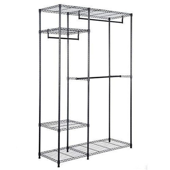 Large Storage Space: The clothes rack has several shelves and 3 rails, thus offering you a large storage space for clothes, shoes and hats. There is also space for storage boxes to keep the room tidy.