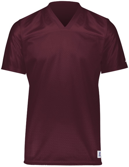 The Russell Athletic® Youth Solid Flag Football Jersey is a practical and comfortable option for young flag football players. Made from 100% nylon for colored versions and 100% polyester tricot mesh for the white version, it provides durability and breathability. The jersey features a 73 cloth yoke for added durability in contact areas, ensuring it stands up to the rigors of the game. It also includes a V-neck collar, side vents for improved air circulation, and set-in sleeves for a comfortable fit. Notably, this jersey is designed to be worn without pads, making it ideal for flag football.