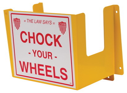 The Wheel Chock Holder keeps wheel chocks safe and prepared for use at any moment. The holder features a steel construction for long life and durability, a yellow powder coat finish for visibility, and pre-drilled mounting holes for easy attachment to a designated surface.