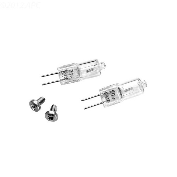 This Ac bulb replacement kit is designed to use with JandyColors small quartz halogen colored pool light. Kit includes 2 bulbs and 8 bulbs are required per light. 25 watt, G4 capsule, 12 volt.